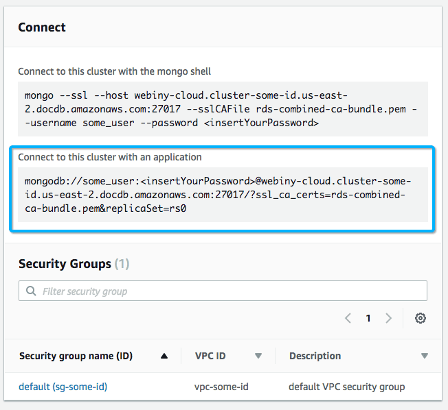 mongodb://some_user:some_password@webiny-cloud.cluster-some-id.us-east-2.docdb.amazonaws.com:27017