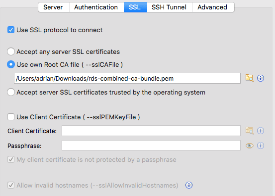 { ssl: true, sslCA: caBundle }