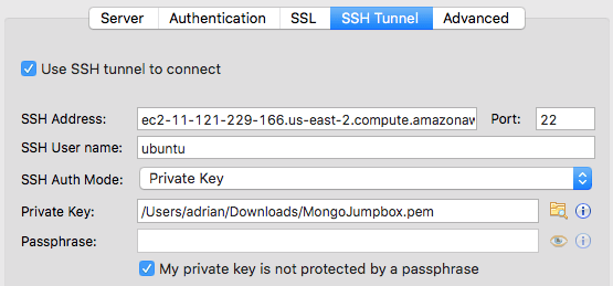 It’s actually pretty simple to setup. You only need to create a simple EC2 instance (t2.micro will suffice) in the same VPC. Once it’s up and running, fire up your favorite MongoDB client; I like to use Studio 3t.