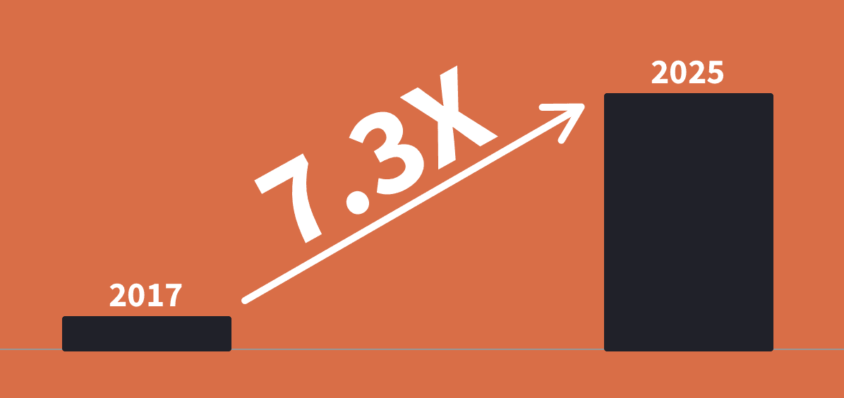 Just 3 years ago the serverless market cap was ~$3bn and early market research shows the market cap in 2025 will be ~$22bn. There is also no indication the market growth will slow down afterwards.