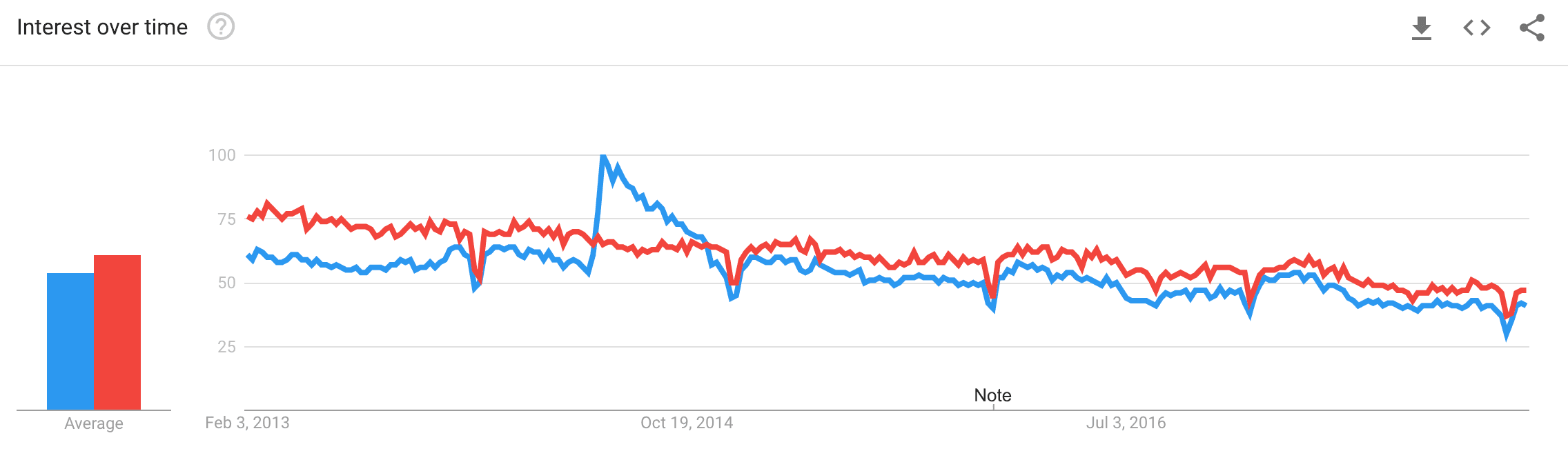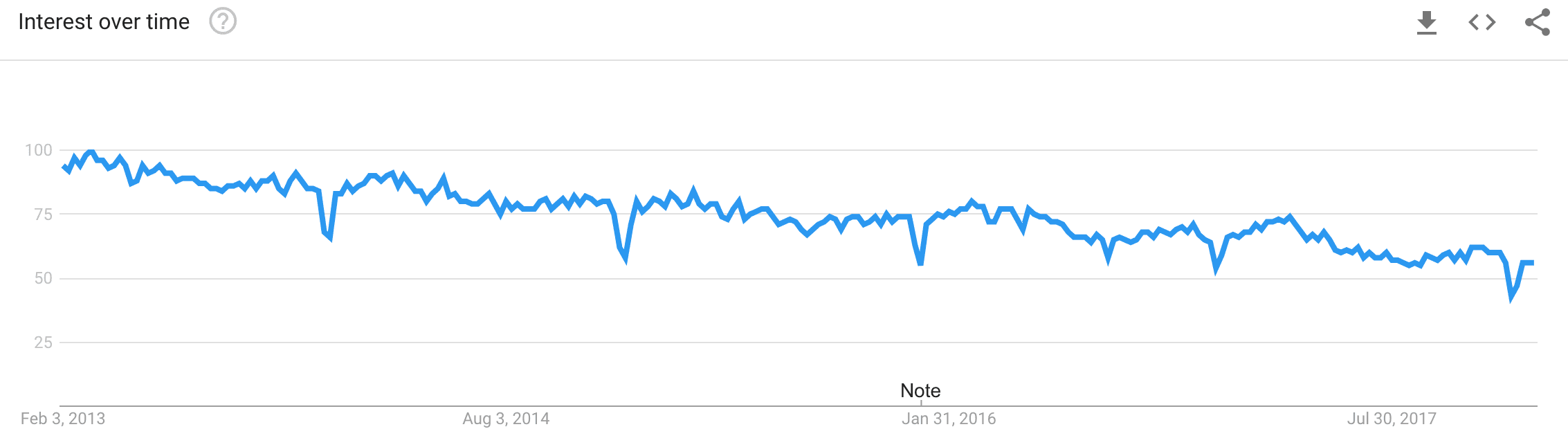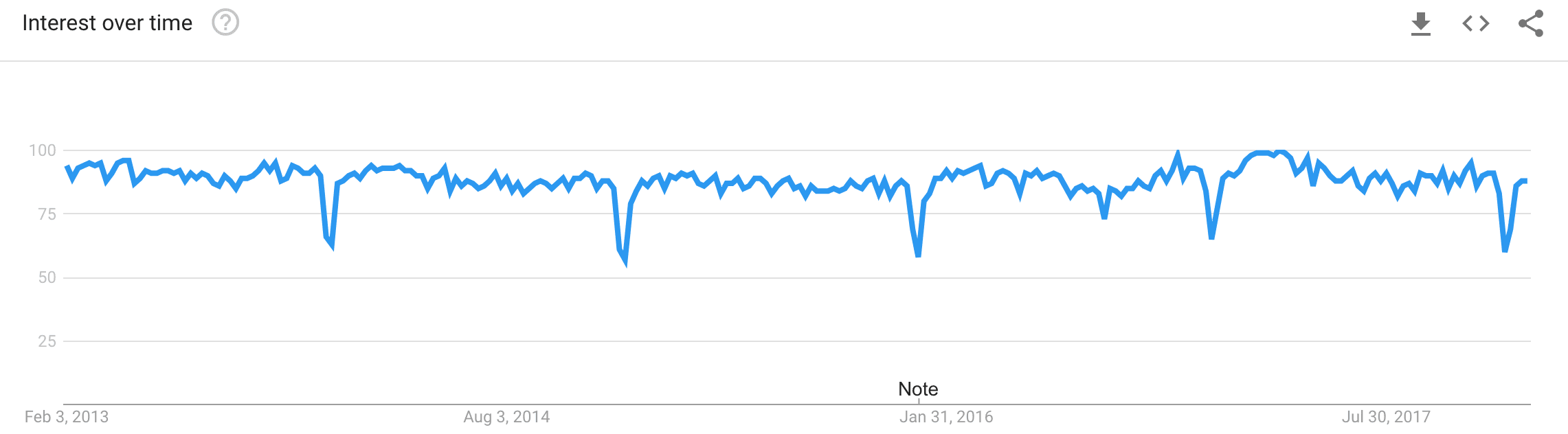 On the other hand, JavaScript has a pretty consistent trend over the same period.