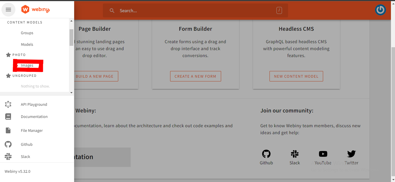 I am assuming that you are done with creating your Webiny project and deploying it. I also assume that you also made yourself an admin user, and now you are on the home page of your application.