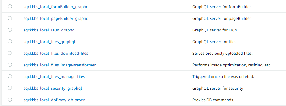 Previously when you would deploy Webiny resources, the resource names only contained some random ID, which wasn’t much of a help to figure out what that resource is doing. We have now changed that. A resource name is much clearer and actually provides some useful information. Resource name now follows a pattern of {project-id}-{environment}-{service-name}.